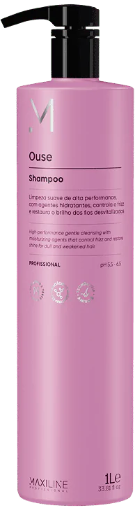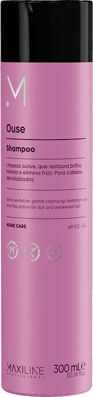 Com ativos que refletem luz, o shampoo potencializa o brilho natural dos fios e prepara para o tratamento completo da linha Ouse.