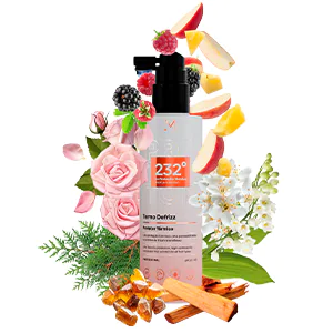 A linha Termo Defrizz combina tecnologia de proteção térmica com uma identidade olfativa sofisticada. A fragrância evolui desde notas frutadas marcantes até um fundo cremoso e aconchegante, criando uma experiência sensorial que permanece nos fios ao longo do dia.